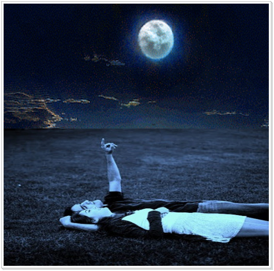 2ª Imagem- Uma linda jovem na escuridão da noite, segura um pedacinho do céu com a lua a iluminar.